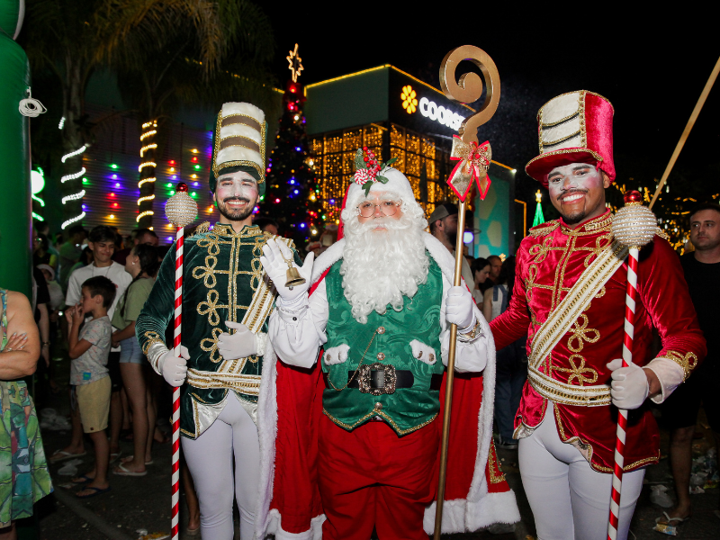Acendimento das luzes, desfile artístico, apresentações e chegada do Papai Noel emocionaram o público durante evento realizado em frente à cooperativa