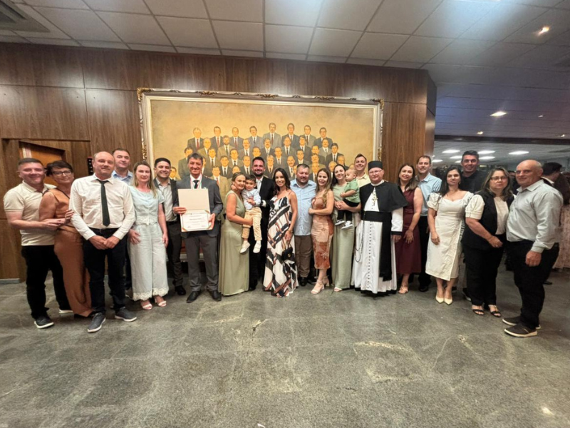 Arilton Francisconi Cândido recebeu a honraria das mãos do deputado Pepê Collaço