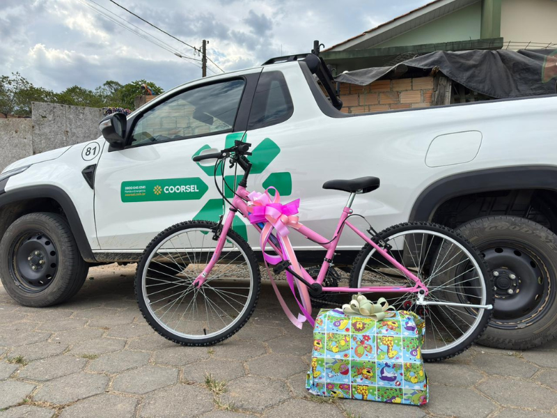 Os pedidos especiais chamaram a atenção da direção da Coorsel, que se mobilizou para adotar as cartinhas. Nesta terça-feira (23), os colaboradores da cooperativa Willian Marcon e Claudio Correa foram até o endereço de Clenice e José Keverson para fazer uma grande surpresa. Eles levaram a tão sonhada bicicleta rosa de Clenice e a piscina redonda pedida por José.